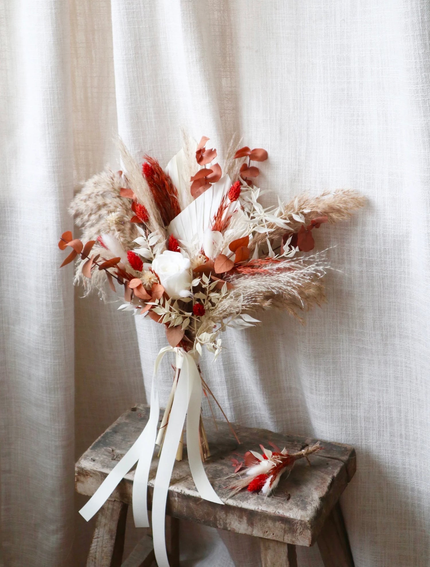 Each stem has been dried and carefully preserved for your bouquet. Please take care as some have been dyed and colour may transfer. Unlike fresh flowers, these dried beauties will last for years as a keepsake from your special day.